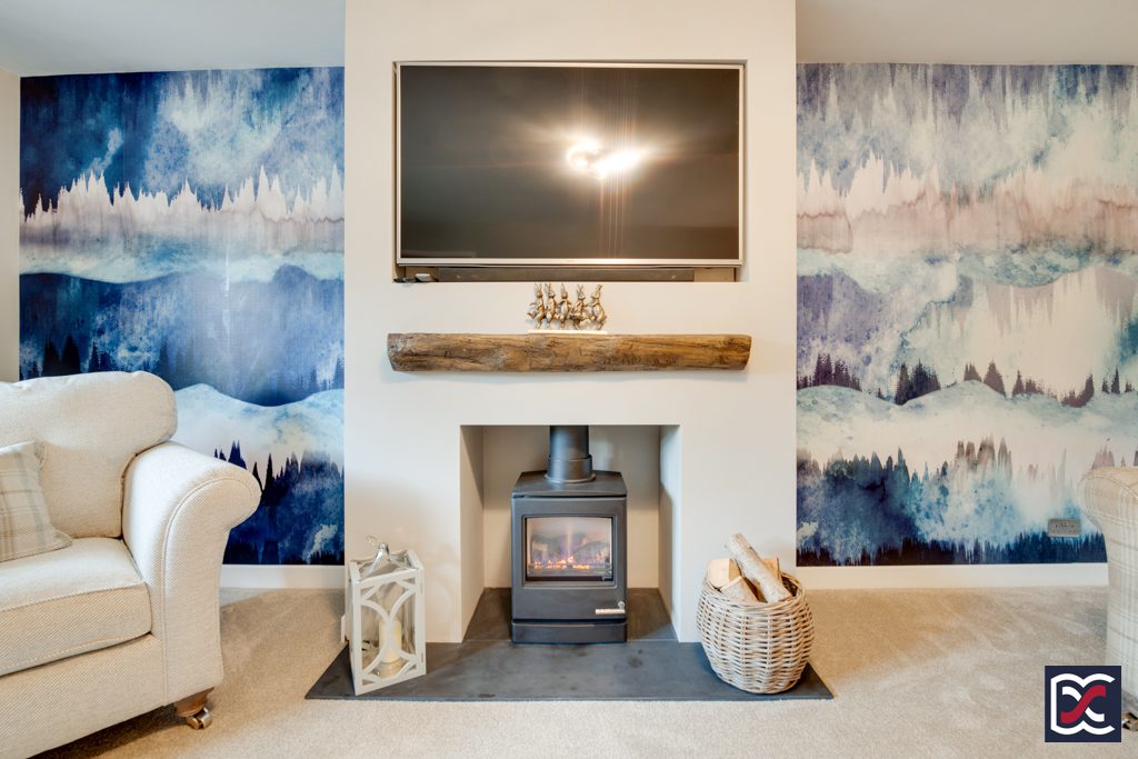 The family snug area is a good-sized space with room for a large sofa and is fitted with a niche for audio visual equipment - perfect for winding down with good film.