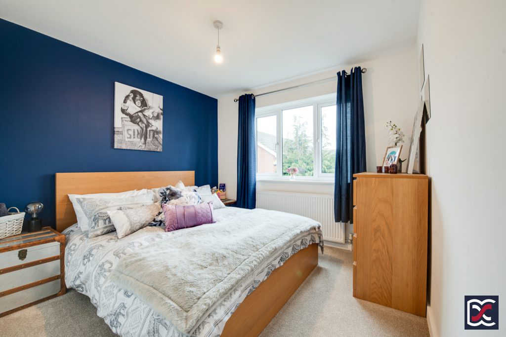 The master bedroom is located to the front left-hand side of the property and has a large four-unit double glazed window overlooking the drive and garden. The bedroom is a good sized double and has ample storage space with a sliding mirrored wardrobe. An oak door leads to the master bedroom ensuite.