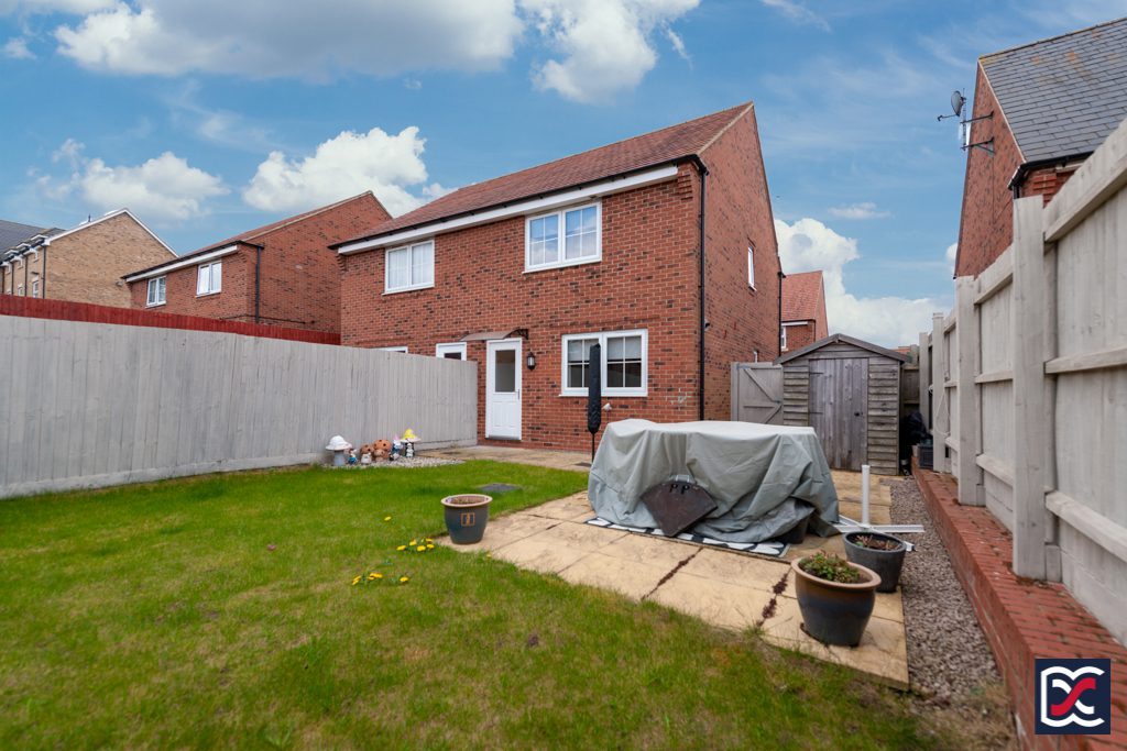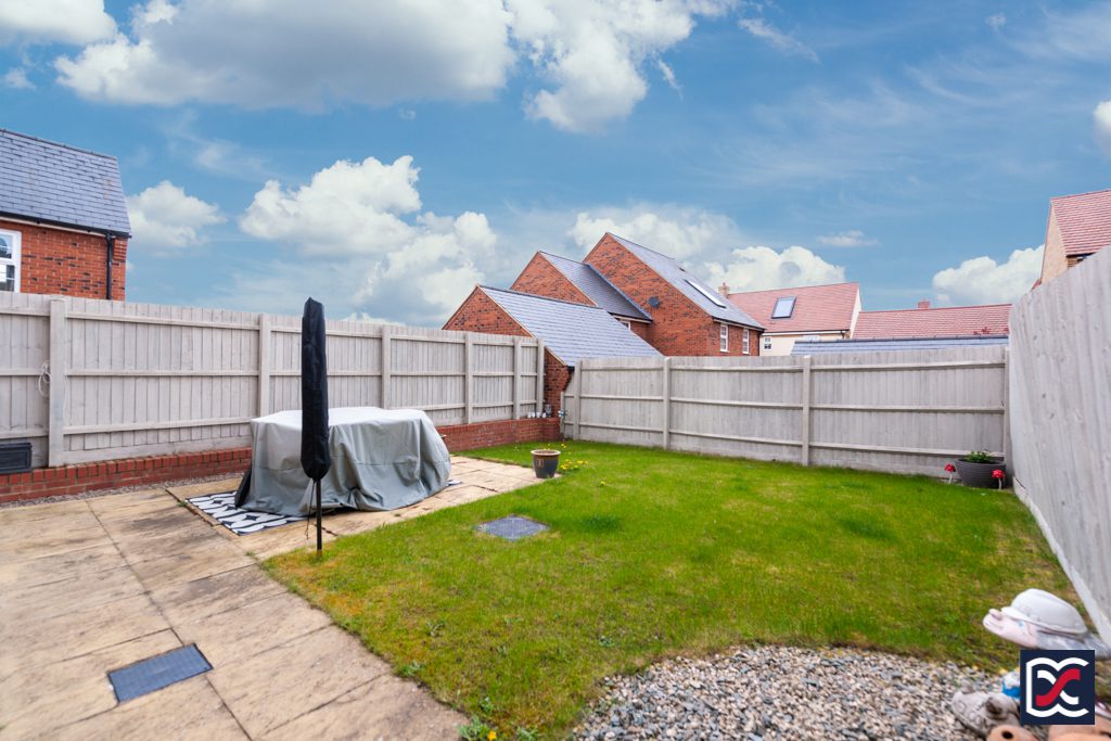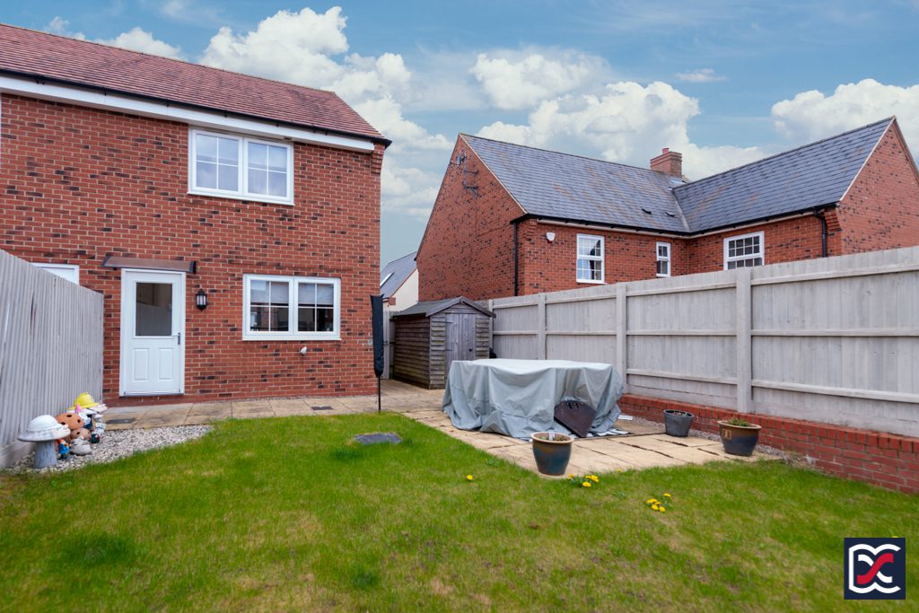 The rear garden has a large patio area and good-sized timber shed. The remainder of the garden is laid to lawn with timber close-board fencing.