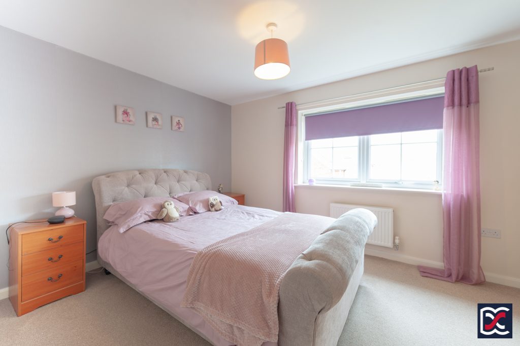 The main bedroom is located to the rear of the property and is a good-sized double room with built-in storage and a large 2-unit double glazed window overlooking the rear garden. Floors are finished with cut pile carpet and the room is neutrally decorated.