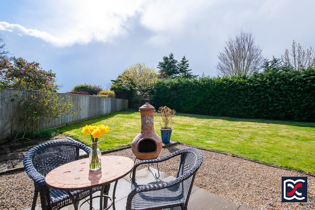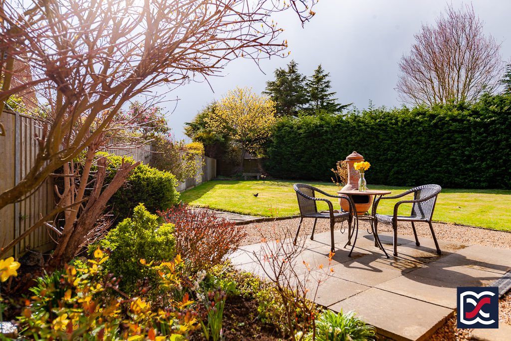 16 Hillside Cresent has a pleasant outlook opposite the well-tended communal green. The neat front garden is laid to lawn and is bounded by Privet hedgerow and timber fencing with a timber access gate. A Primrose lined pathway to the side of the property leads to the main entrance door and a further gate opens into the impressive rear garden.