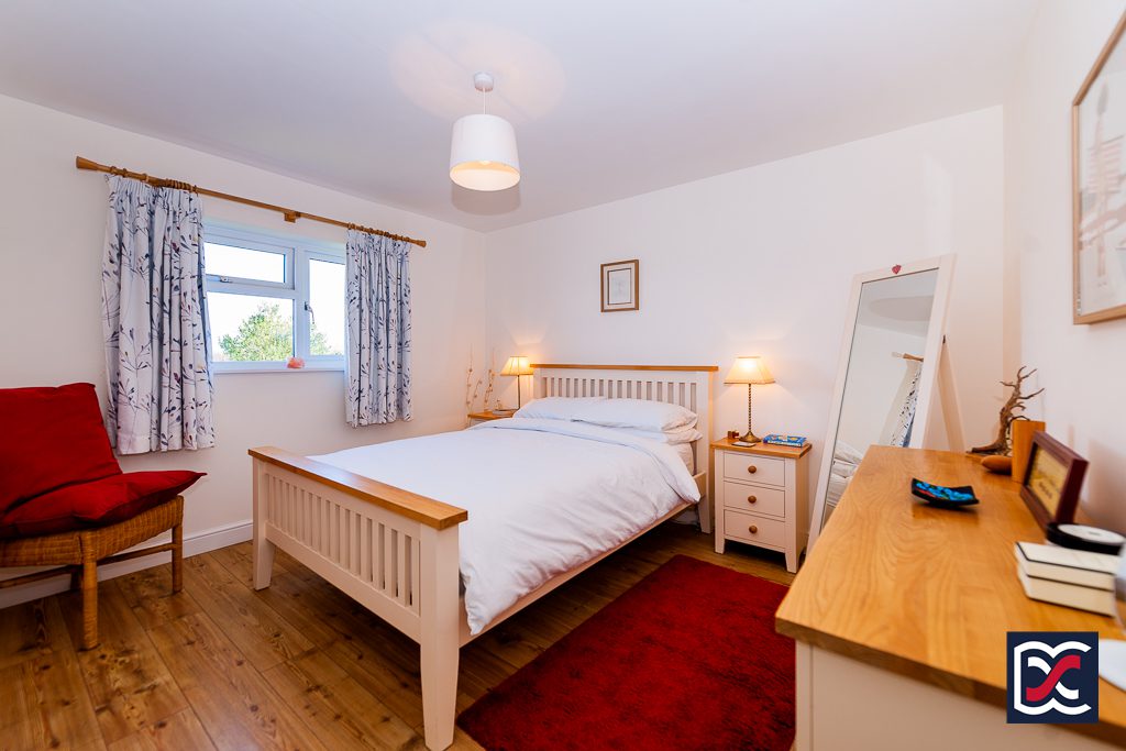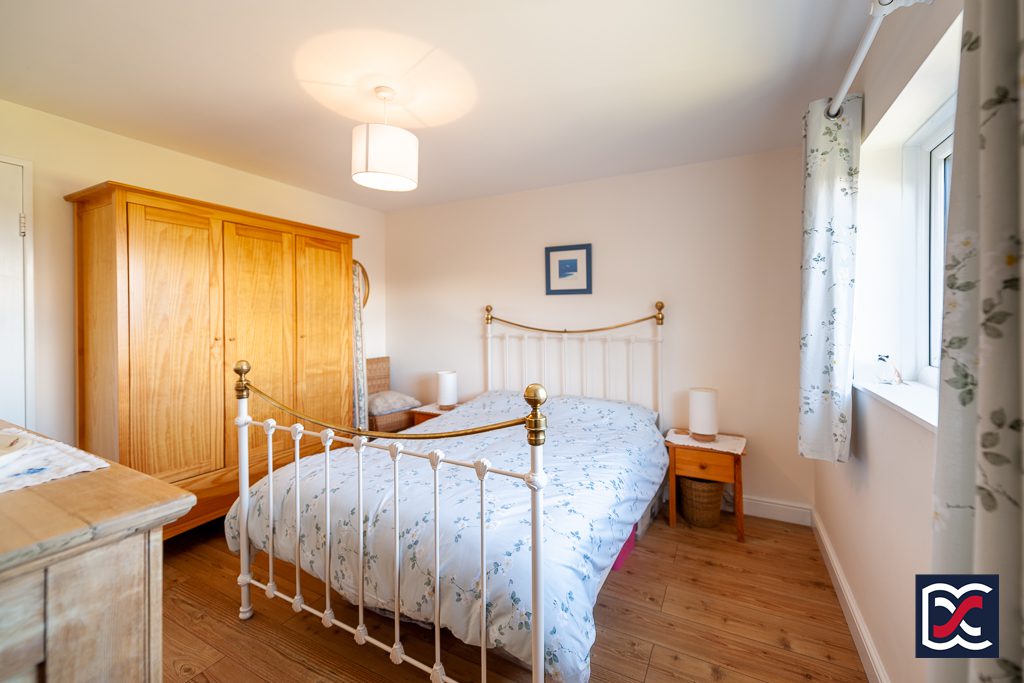 Another good-sized double bedroom with three-unit window overlooking the green and countryside beyond. Again, the room has been neutrally decorated and finished with built-in wardrobe and good quality timber laminate floor boards.