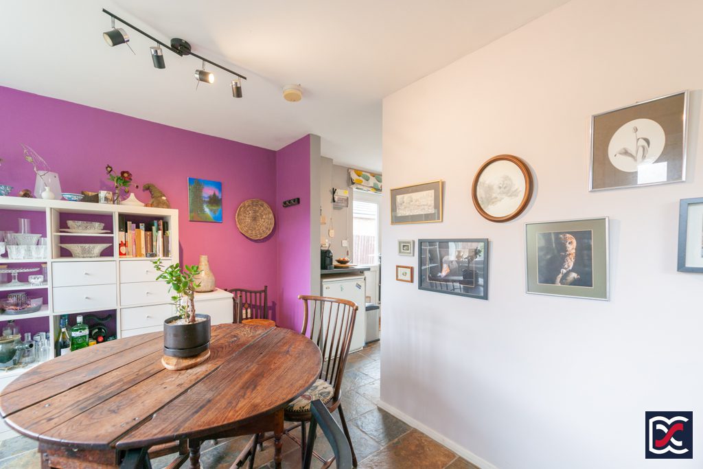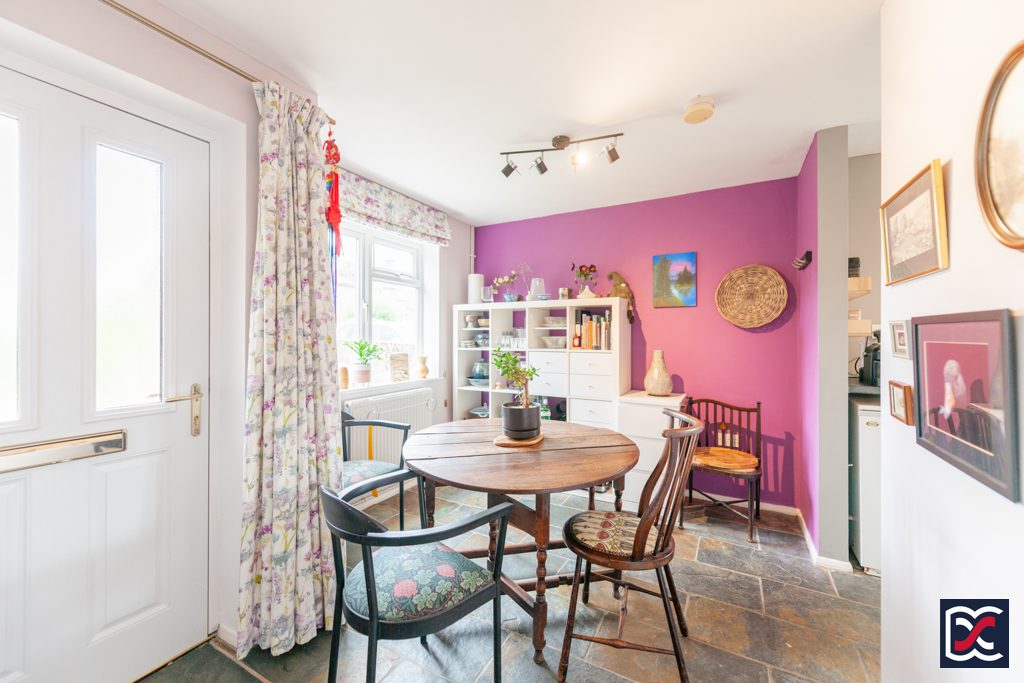 The dining room is located to the front of the property and is accessed directly from the main front entrance door. It is finished with slate effect tiles which extend through to the kitchen area. A two-unit double glazed window provides natural lighting and overlooks the front garden. A 6-panel door leads through to the sitting room.