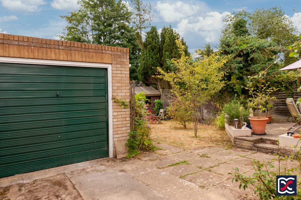 The detached brick garage has an aluminium up and over door and separate part glazed pedestrian door. It is fitted with lighting and power and a double-glazed casement window provides good natural lighting.