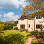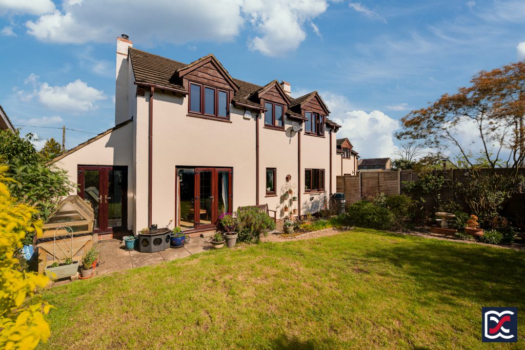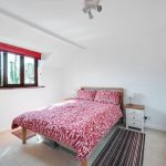 Bedroom four is located to the rear left hand side of the property and has loop pile carpet and vaulted ceilings with exposed painted timbers. A three-unit window overlooks the southeast facing rear garden.