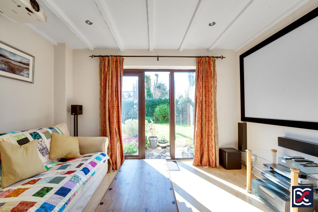 Located to the central rear elevation of the property with double-glazed French doors opening onto the south facing garden and a matching full height double-glazed side-light, the family room provides the perfect breakaway space or children’s play area. Currently used as a cinema room, this area would also make a great study space.