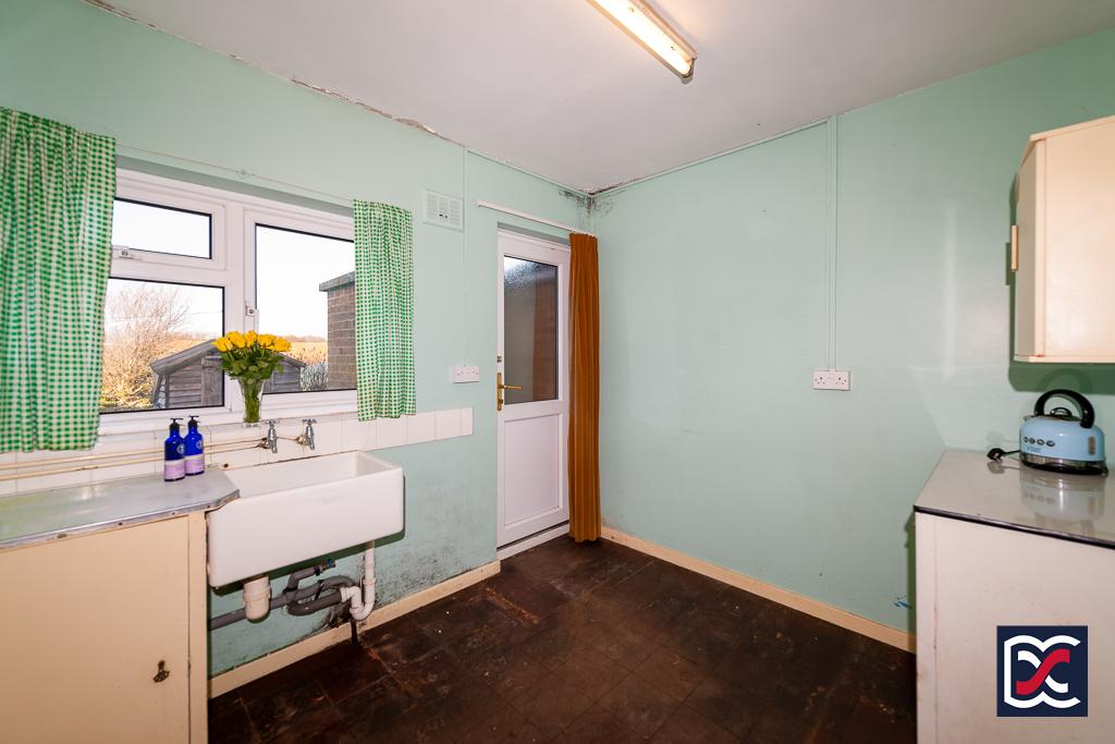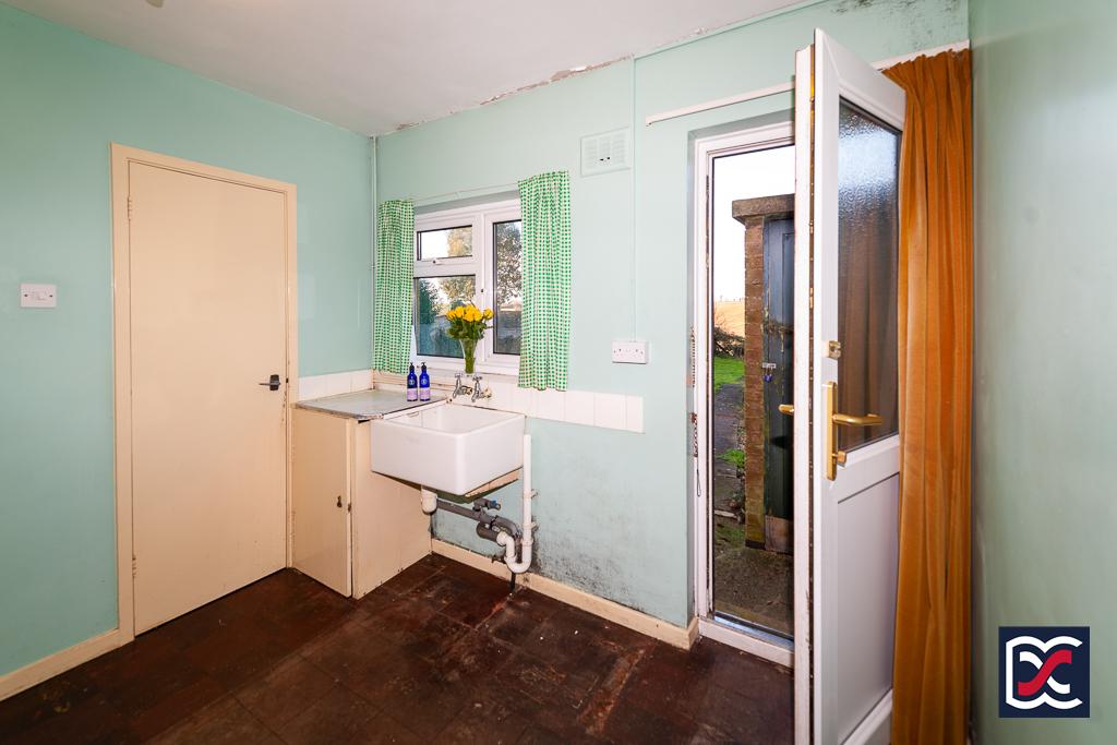 The kitchen is located to the rear of the property and contains a double-unit window overlooking the rear garden and countryside beyond. The original Belfast sink is still in place together with two small melamine base units; however, a potential purchaser would likely install new units to modern standards. A good-sized pantry with window together with a separate adjacent cupboard provide storage space.