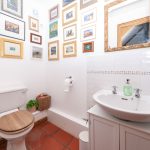 The cloakroom is fitted with a close-couple WC and ceramic wash-hand basin with chrome pillar taps and shaker-style vanity unit below. Floors are finished with matching terracotta tiles which flow through from the entrance hall and walls are neutrally decorated. Mechanical extract ventilation has been installed.