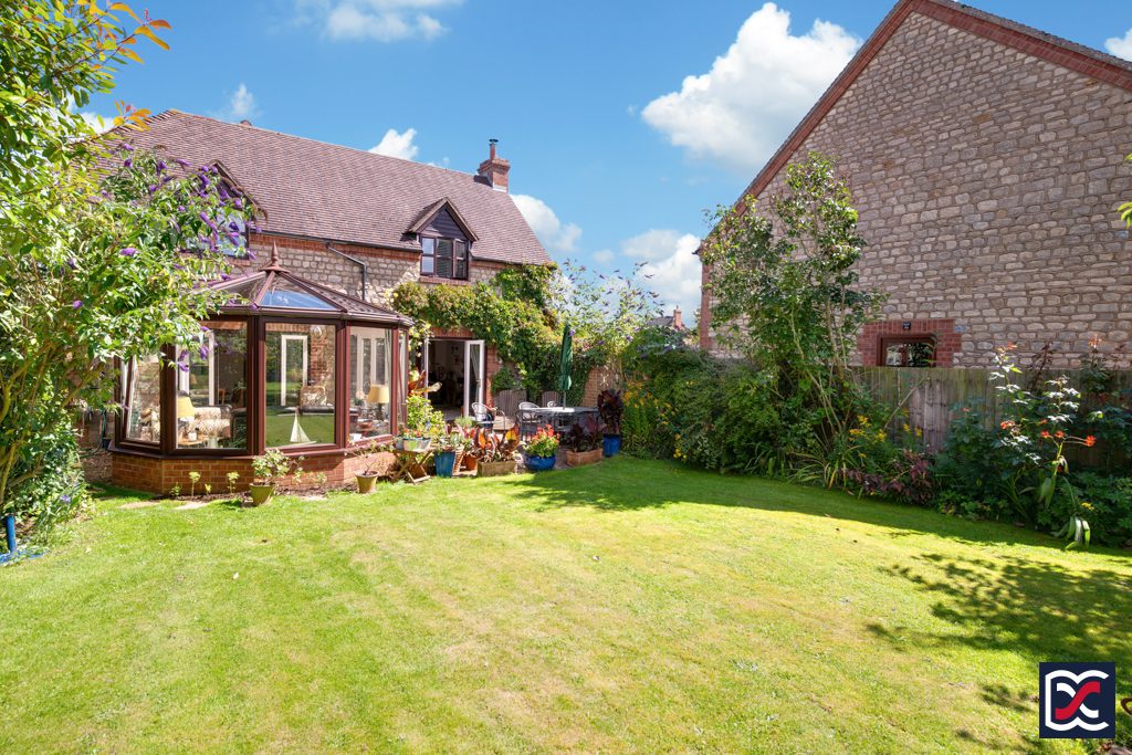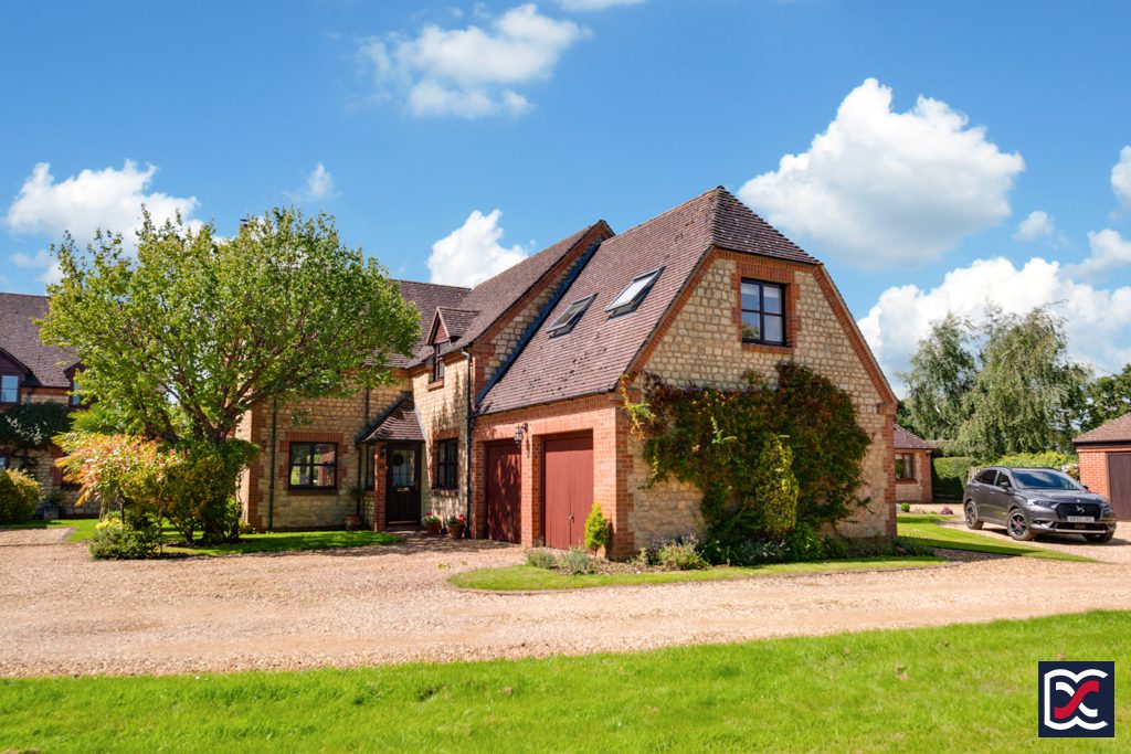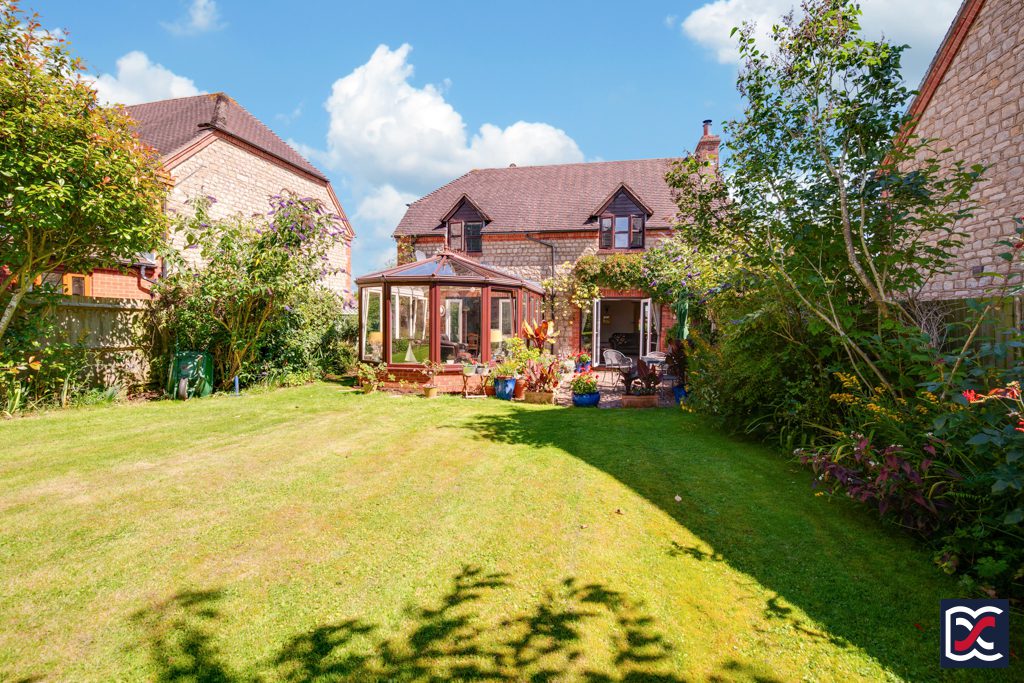 8 The Green is a well-presented, detached, five-bedroom family home situated in an exclusive development within the highly desirable village of Church Stowe in South Northamptonshire. The property is constructed from coursed Pury End stone with facing brick quoins and has steeply pitched and tiled roofs incorporating gabled, dormer windows and bonnet hips. Accommodation includes five bedrooms with en-suite to master bedroom, two reception rooms, kitchen / breakfast room, large Georgian-style conservatory, ground-floor cloakroom, and family bathroom. The gravel driveway sweeps round to the double garage and provides off-road parking to the front aspect which is well-tended with established shrubs and trees. A gravel pathway to the right-hand side of the property provides gated access to the south west facing rear garden which backs onto pasture land.