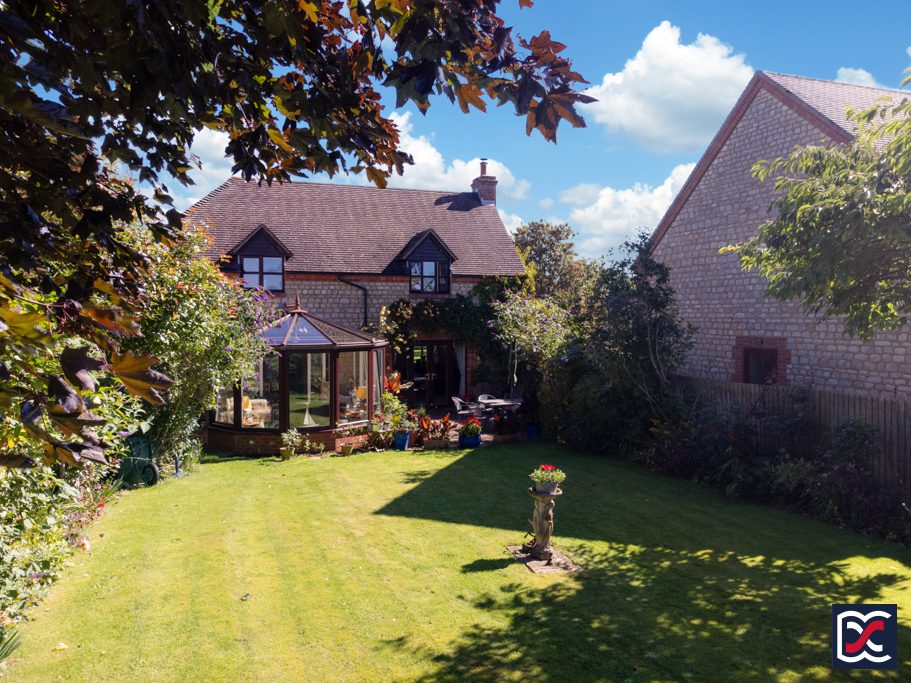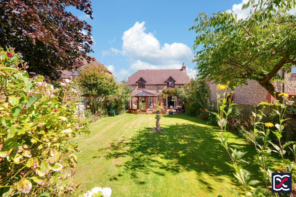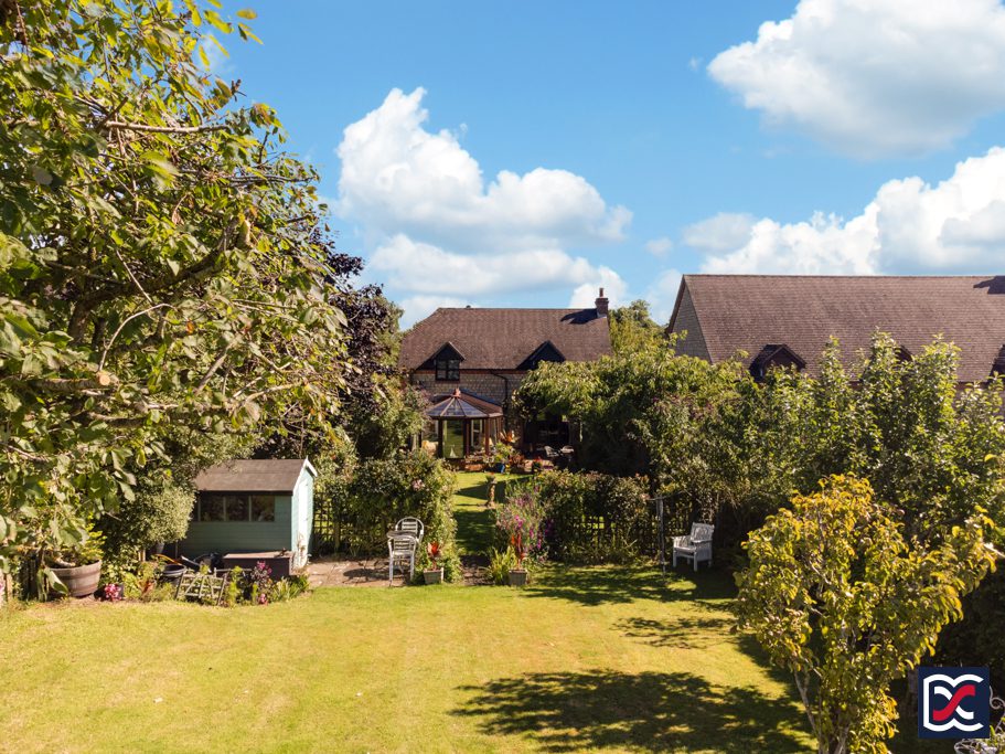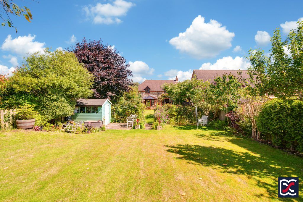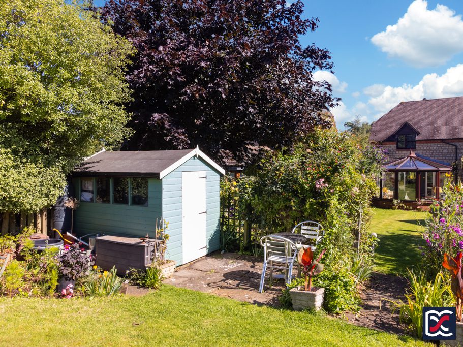 The south west facing rear garden benefits from sunlight throughout most of the day and is a beautifully tended space with an array of herbaceous borders and trees which are currently in full bloom. Climbing Rose and Virginia Creeper frame the French doors to the rear of the sitting room which open onto the patio. The garden is divided into two separate areas both of which have main central lawns with established perimeter shrubs. The far rear, portion of the garden has a further patio area providing a secluded retreat and there is a good-sized timber, potting shed. A timber picket fence to the far rear of the garden overlooks pasture land with far-reaching countryside views.