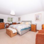 The master bedroom is a dual-aspect room to the rear left-hand side of the property with dormer casement windows to both front and rear elevations affording pleasant views over the communal green and the well-tended rear garden with onward views to pastureland. Floors are fitted with cut-pile carpet and the part-vaulted ceilings and walls are neutrally decorated. There is built-in storage space to the rear of the bedroom with clothes rail and upper shelving. A pine door opens to the master en-suite.