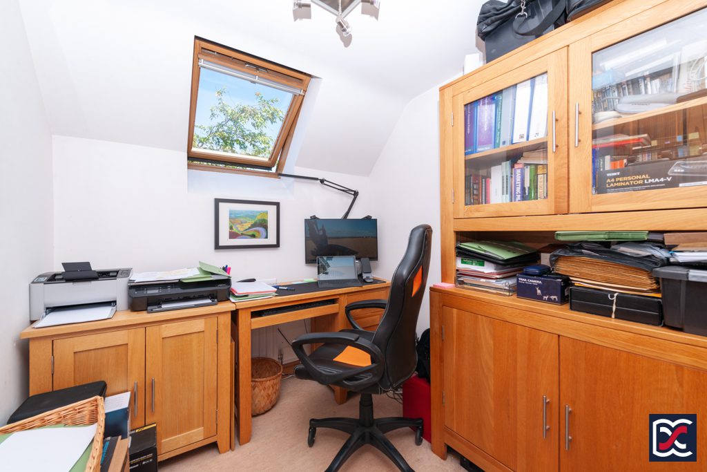 Bedroom five is a single bedroom currently used a home office to the side elevation of the property.