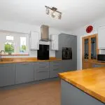 Located centrally within the ground floor, the kitchen enjoys a segmental bay window to the front elevation, with additional borrowed light from the French doors to the rear of the dining room.