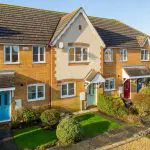 Set back from Ashby Court, the property is approached via a pathway leading to the principal entrance, with two parking bays positioned to the front and a further allocated space situated to the side of the terrace.