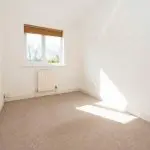A single bedroom positioned to the rear of the property, enjoying views over the garden through a two-pane casement window. The room is finished with loop-pile carpet and neutral décor, with perimeter ovolo coving.
