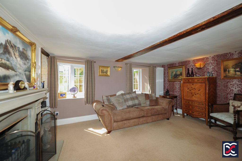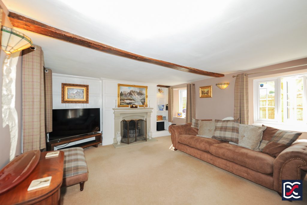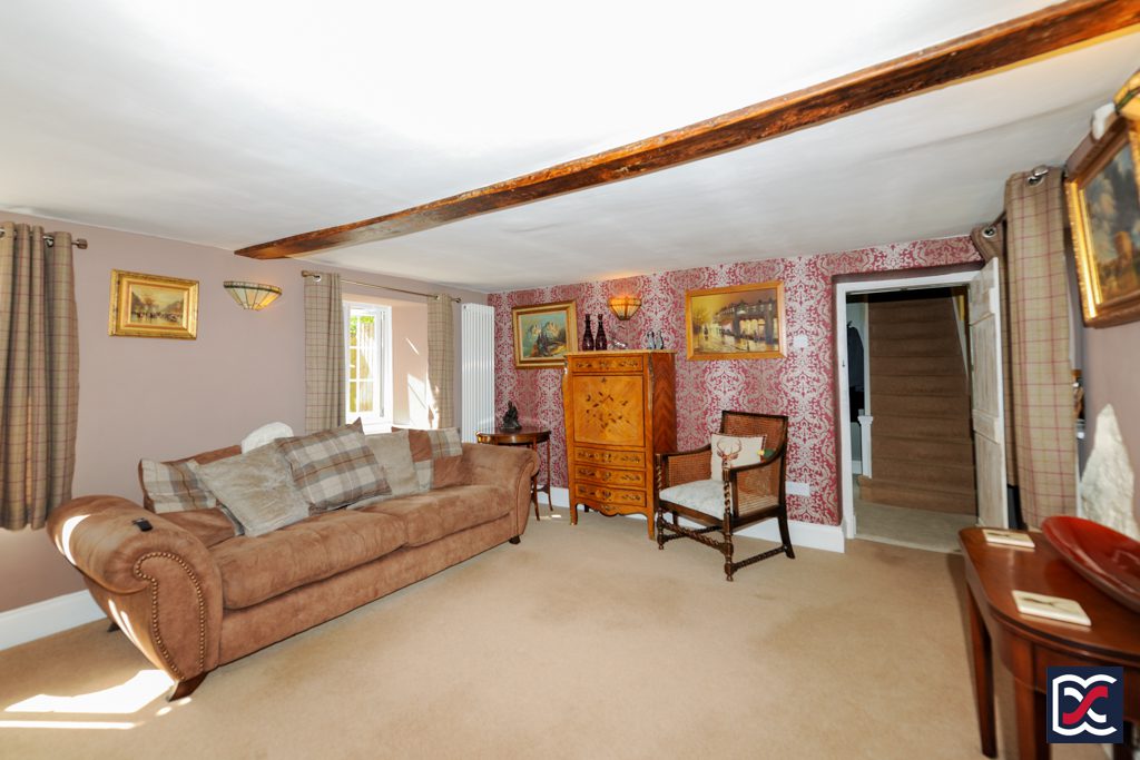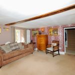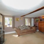 The sitting room is accessed by an original oak door, again with T-bar hinges and Suffolk latch. As with the kitchen and dining Room, it is a dual-aspect space and benefits from sunlight throughout the day. The sitting room is located within the original 18th century portion of the property and features some areas of exposed roughly hewn stonework and an original stained beam. The inner face of the gable wall has been finished with classically styled timber panelling and there is a large Minster-style stone surround to the feature open fireplace. Timber shelving has been formed to the right-hand side chimney niche. Space heating is provided by a full height column radiator and floors are finished with plush cut pile carpet which flow through from the dining room.