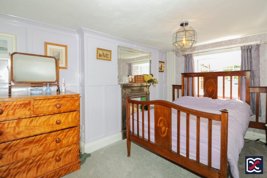 The master bedroom is a delightful double room with traditional wall panelling to the gable end, and a feature fireplace surround with decorative tile reveals. Remaining walls are finished with decorative lining paper and heating is provided by a contemporary vertical column radiator. There is a two unit double glazed window overlooking the front garden.