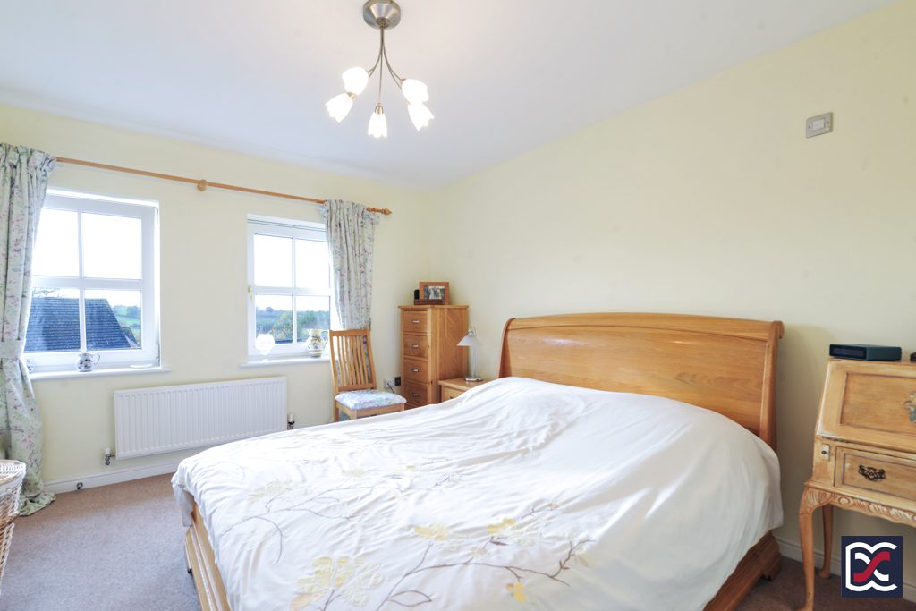 Bedroom One is a good-sized double bedroom with double door wardrobe incorporating high level shelving. There is also an over-stair airing cupboard which houses the hot water cylinder and is fitted with slatted pine shelving. The two windows on the rear elevation wall overlook the rear garden and provide far reaching south facing countryside views.