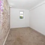 This dual-aspect room benefits from good natural light from both front and rear windows. The walls are part fair-faced brickwork with the remainder plasterboard lined and finished with emulsion paint. The floor is laid with cut-pile carpet.