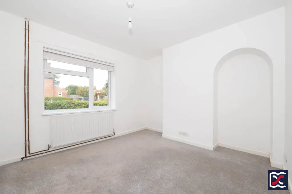 Positioned to the front of the property, this reception room features a three-unit window overlooking the front aspect, allowing good natural light. The room is finished with off-white emulsion walls and cut-pile carpet. The original fireplace has been blocked and vented, with a feature arched side niche.