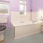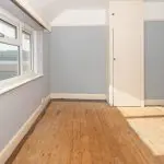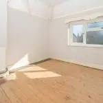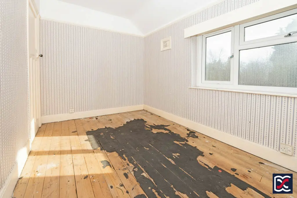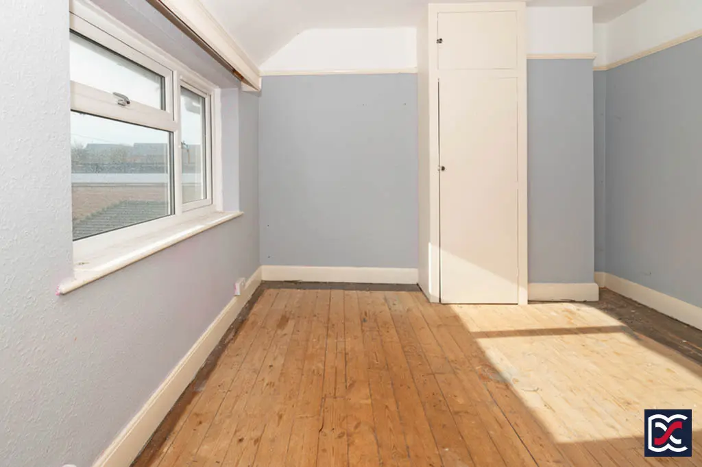 Bedroom 2 is a well-proportioned double room with a window to the rear elevation, enjoying views over the garden. A built-in cupboard houses the domestic hot water cylinder. The room retains original timber floorboards ready to receive new coverings, together with profiled picture rails to the walls.