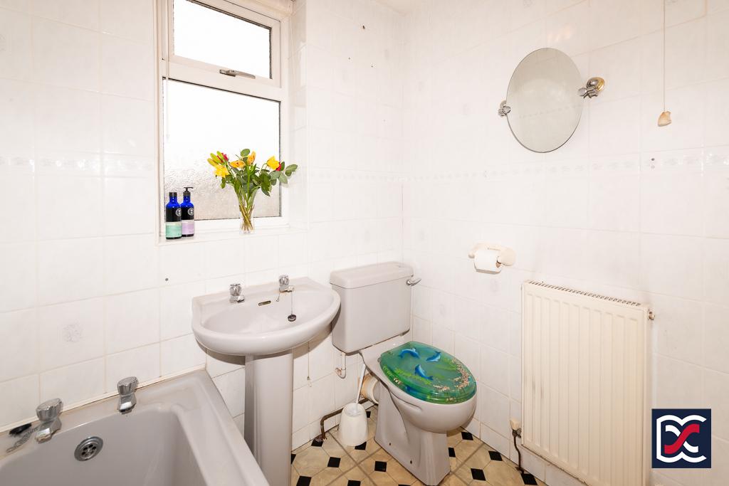The bathroom is situated to the rear of the property and has floor to ceiling ceramic wall tiling and vinyl flooring. Fittings comprise WC, wash hand basin and bath with electric shower over.