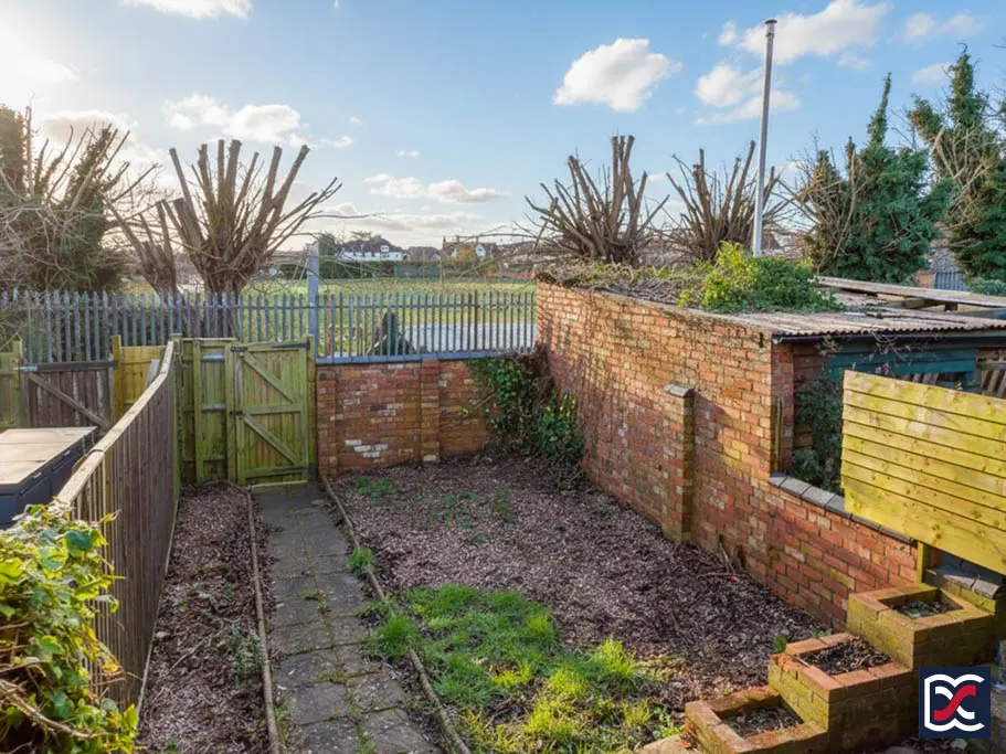 The rear garden enjoys both pedestrian and vehicular access via a shared right of way running behind the King Edward Road terraces. Entry is through a lockable ledged-and-braced timber gate. Boundaries are formed by a mix of traditional brick garden walls and close-boarded timber fencing. A riven-effect paved patio and pathway lead to the kitchen door and the French doors serving the dining area, creating a practical link between the internal accommodation and the garden and providing space for outdoor seating. The remainder of the garden is predominantly gravelled, with raised brick planters.