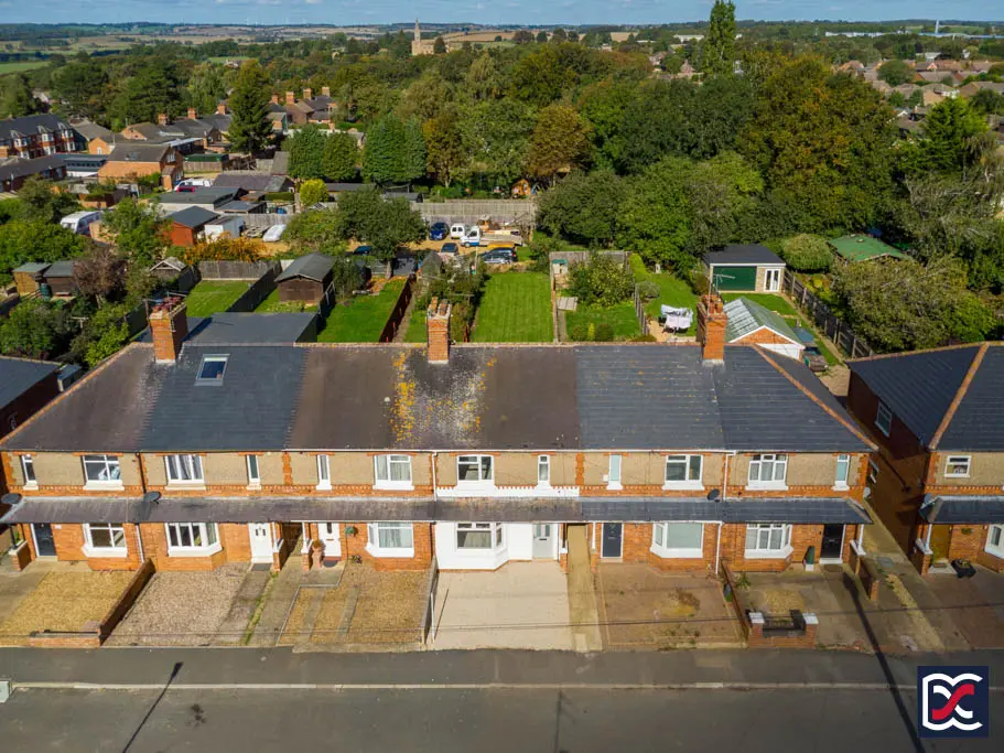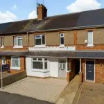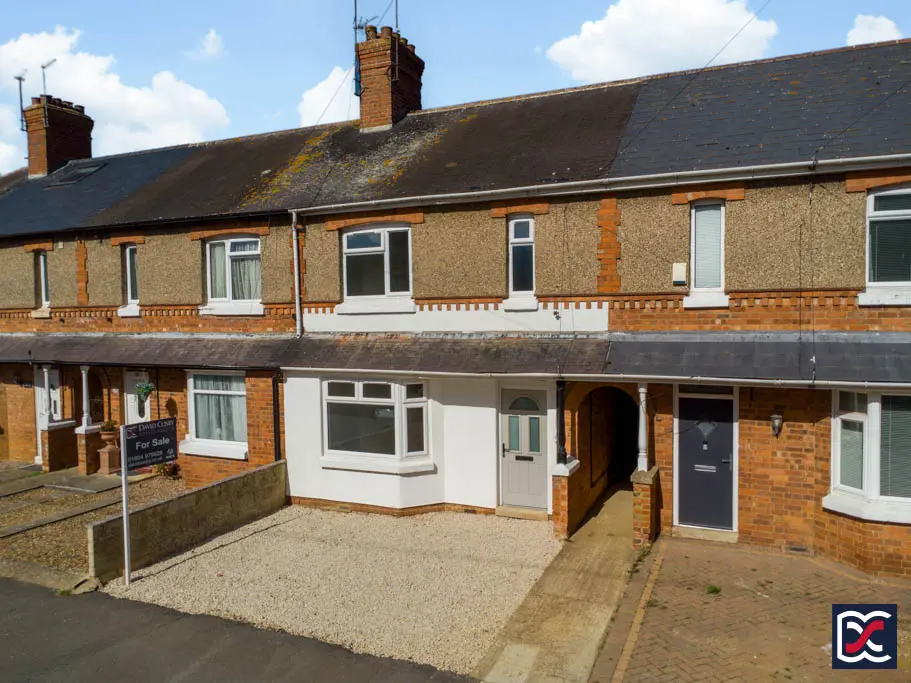 This recently refurbished, three-bedroom Edwardian property is offered for sale with no onward chain and is located in the picturesque and thriving village of Brixworth. The property features traditional Edwardian architecture, with a rendered facade, brick detailing, and a slate-clad canopy with timber supports extending over the entrance and bay window.