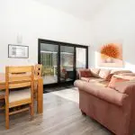 Centrally positioned within the open-plan layout, this flexible area comfortably accommodates a family dining table and soft seating. Tri-fold doors open to the side terrace, extending the space outside and providing excellent natural light.