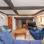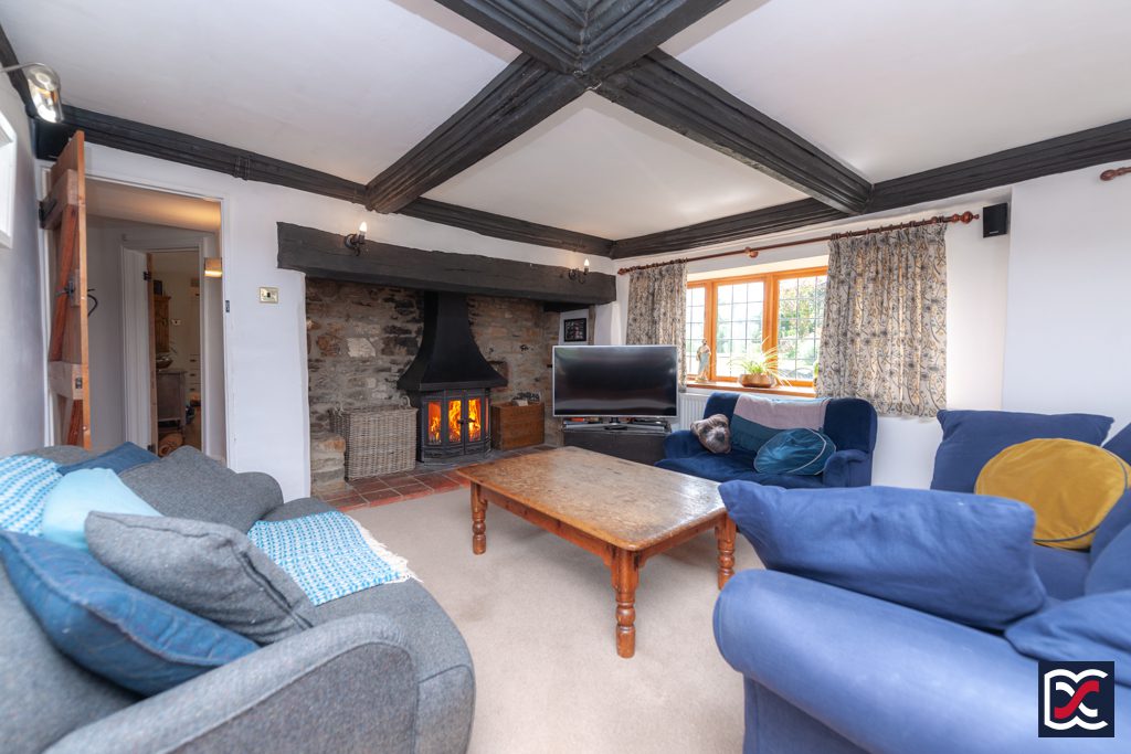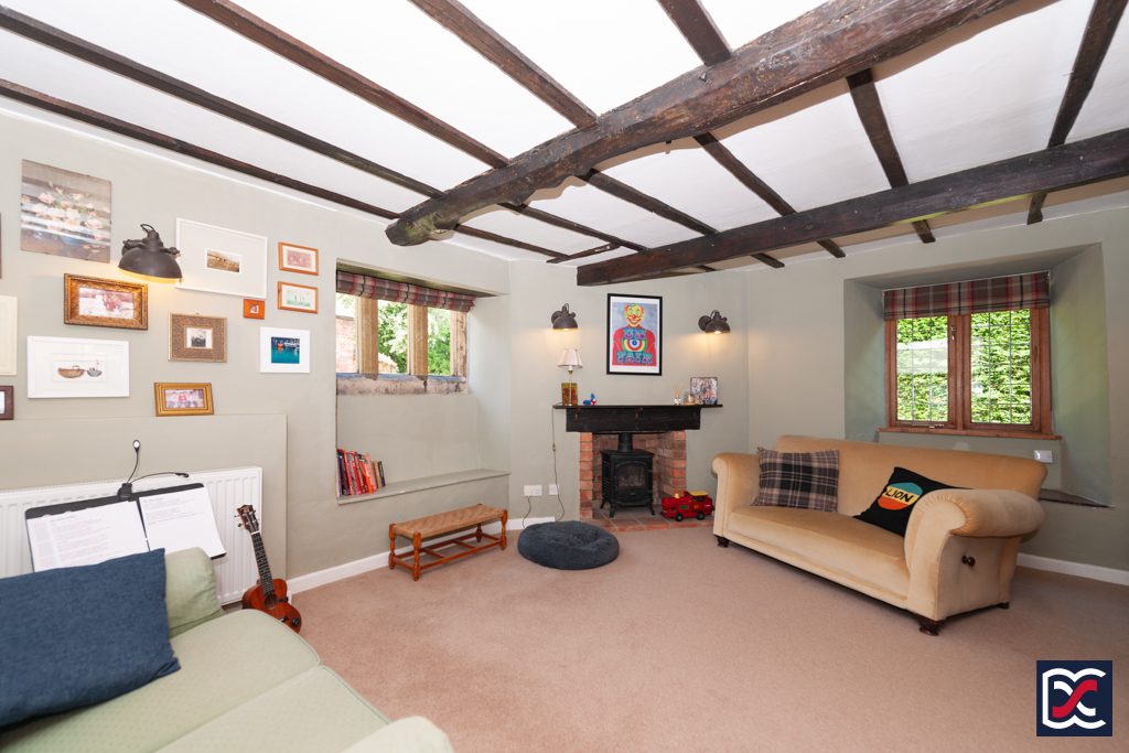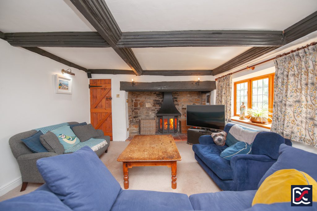 The hub of the house is the large dual aspect sitting room with a magnificent inglenook fireplace with a chamfered oak lintel over, quarry tile hearth, and ironstone reveals. The fireplace houses a large double-door, multi-fuel stove with a traditional hood over and has stone seating on either side. Floors are finished with cut pile carpet, and the walls are neutrally decorated and fitted with perimeter wall lights.