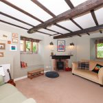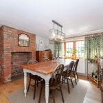 Situated at the centre rear of the property, the dining room features a large oak leaded light casement window that provides ample natural light and picturesque views of the south-facing garden. The room accommodates a large table and chairs, making it ideal for family gatherings. A feature brick fireplace with a segmental brick arch and stone hearth adds character; whilst currently boarded over, it has the potential to be reopened. The flooring is solid oak boards, and the walls are neutrally decorated.