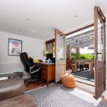 The front portion of the original garage has been transformed into a versatile workshop and storage space, ideal for any DIY enthusiast. It features double swing doors to the front aspect, providing easy access. This area offers ample storage potential and is equipped with a single strip light for adequate lighting.