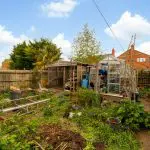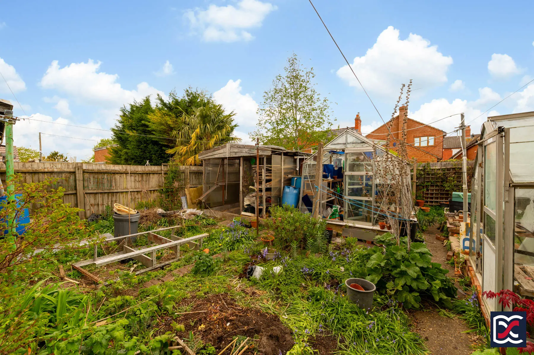 The rear garden occupies a generous plot extending to in excess of 150 sq m, including the sheds and workshop areas. Enclosed by close-board fencing, it has principally been used for vegetable growing and hobby use, with a timber shed to the rear left-hand side and two glasshouses.