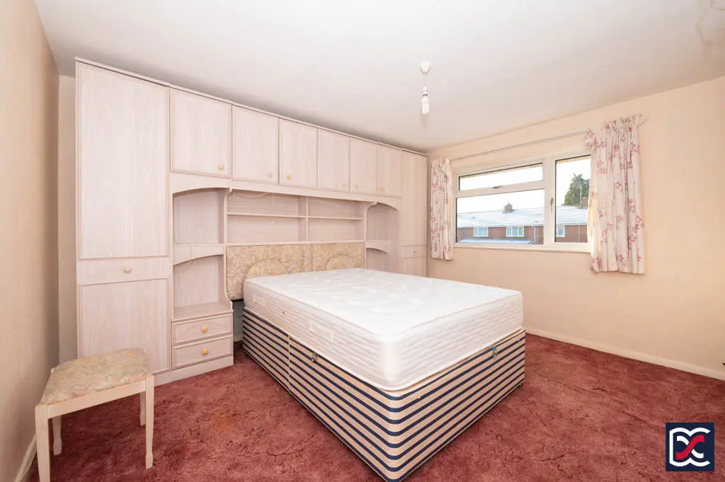 A generous double bedroom positioned to the rear left-hand side of the property, with a three-light window providing good natural light. The room offers useful perimeter space for freestanding storage and is finished with cut-pile carpet. Walls are neutrally decorated.