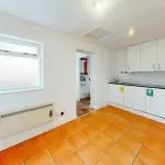 The staff room/kitchen is neutrally presented and benefits from a top-opening casement window to the rear, providing natural light. The space is fitted with ceramic tiled flooring together with a range of built-in base and wall units, incorporating a circular stainless-steel sink with mixer tap.