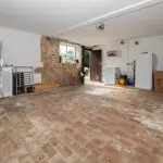 With limewashed stone perimeter walls, the cellar offers useful storage for non-perishable items. It has a brick-on-earth floor, exposed chamfered floor beams and timber support posts, and a floor-to-ceiling height of approximately 1.85m. Power and lighting are connected.