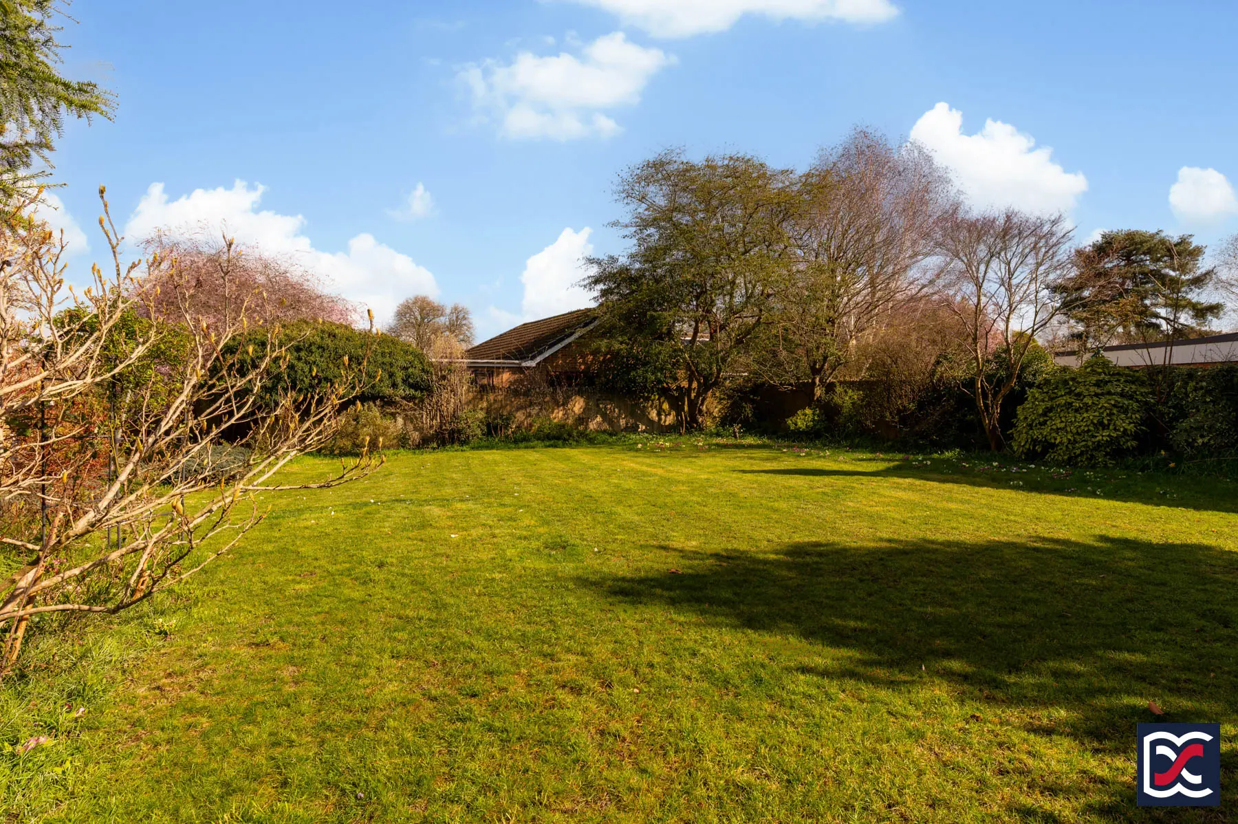 Outside, the property stands within generous landscaped gardens, unusually large for such a central village position. Gated access from Barlow Lane leads to a gravel driveway with ample off-road parking, while the south-facing rear garden is arranged over a series of levels, with patio seating areas, lawn and established planting, together with an integral double garage and useful outbuilding.